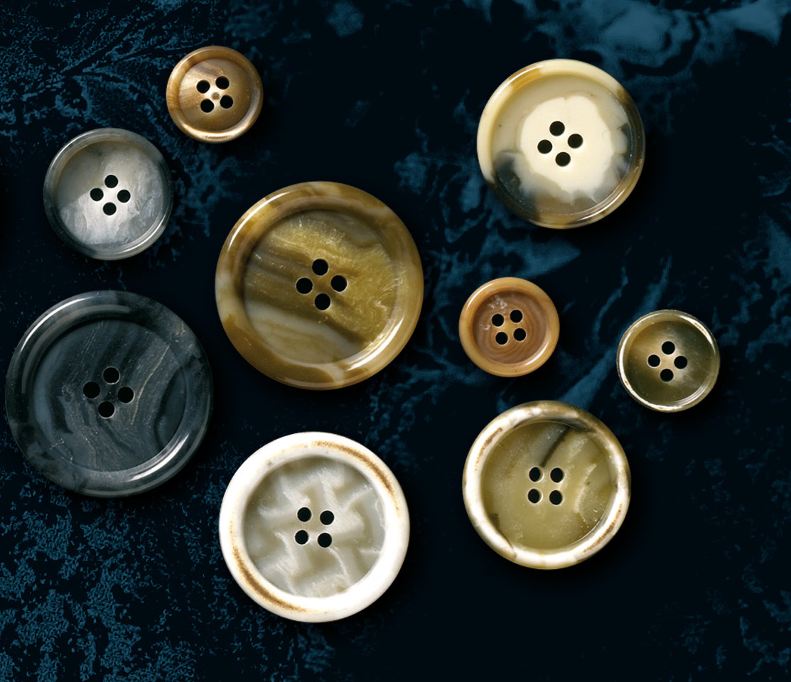Produtos de alta gama, não só pelo aspecto estético mas também pela constância dos efeitos e da superfície, variedade de modelos, cores e pelo rigor dimensional. São produzidos através de uma complexa tecnologia que utiliza na fase de construção da estrutura do botão, somente a mão de obra humana.
